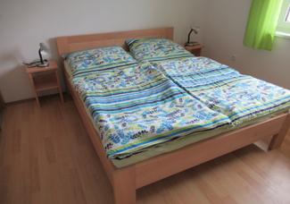 Způsobilým výdajem je nákup postelí z masivní fošny tvrdého dřeva vč. roštů a matrací a noční stolky. Dvoulůžka 6 ks, válendy 5 ks, rošty 17 ks, matrace 17 ks a noční stolky 12 ks.