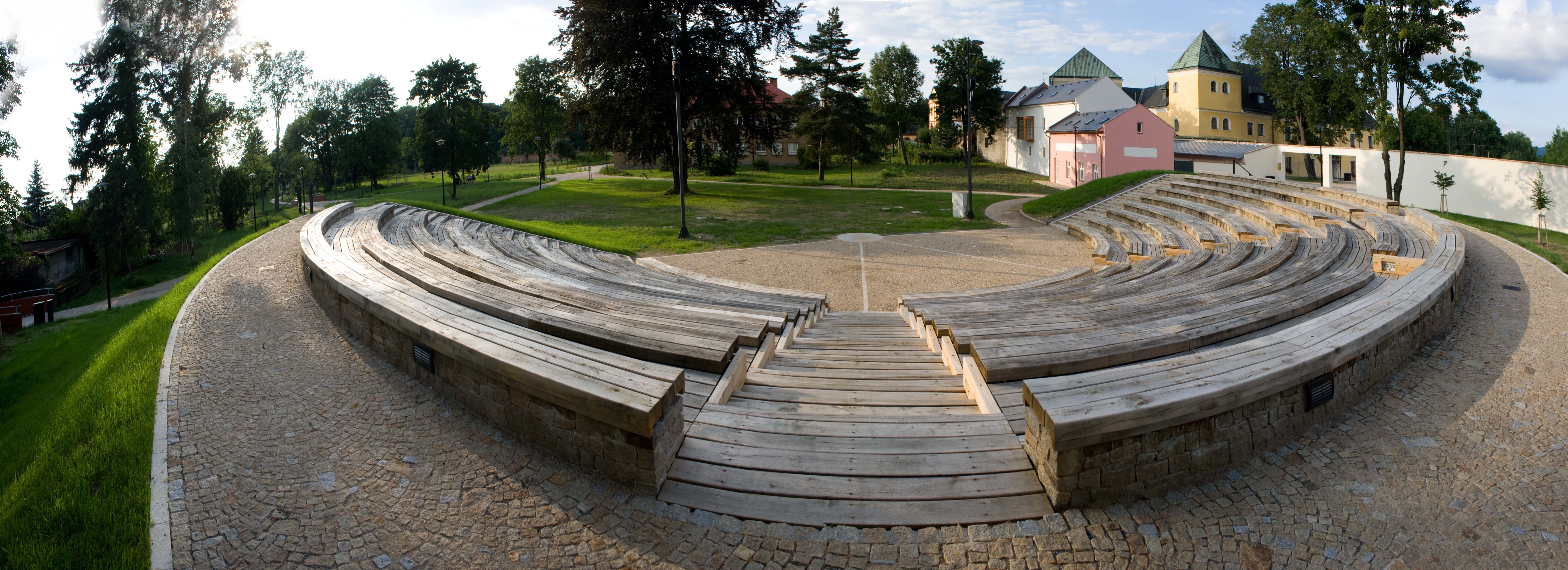 AMFITEÁTR A ZÁPADNÍ KŘÍDLO ZÁMKU, Centrum města Velká Bystřice - oživení Zámeckého areálu