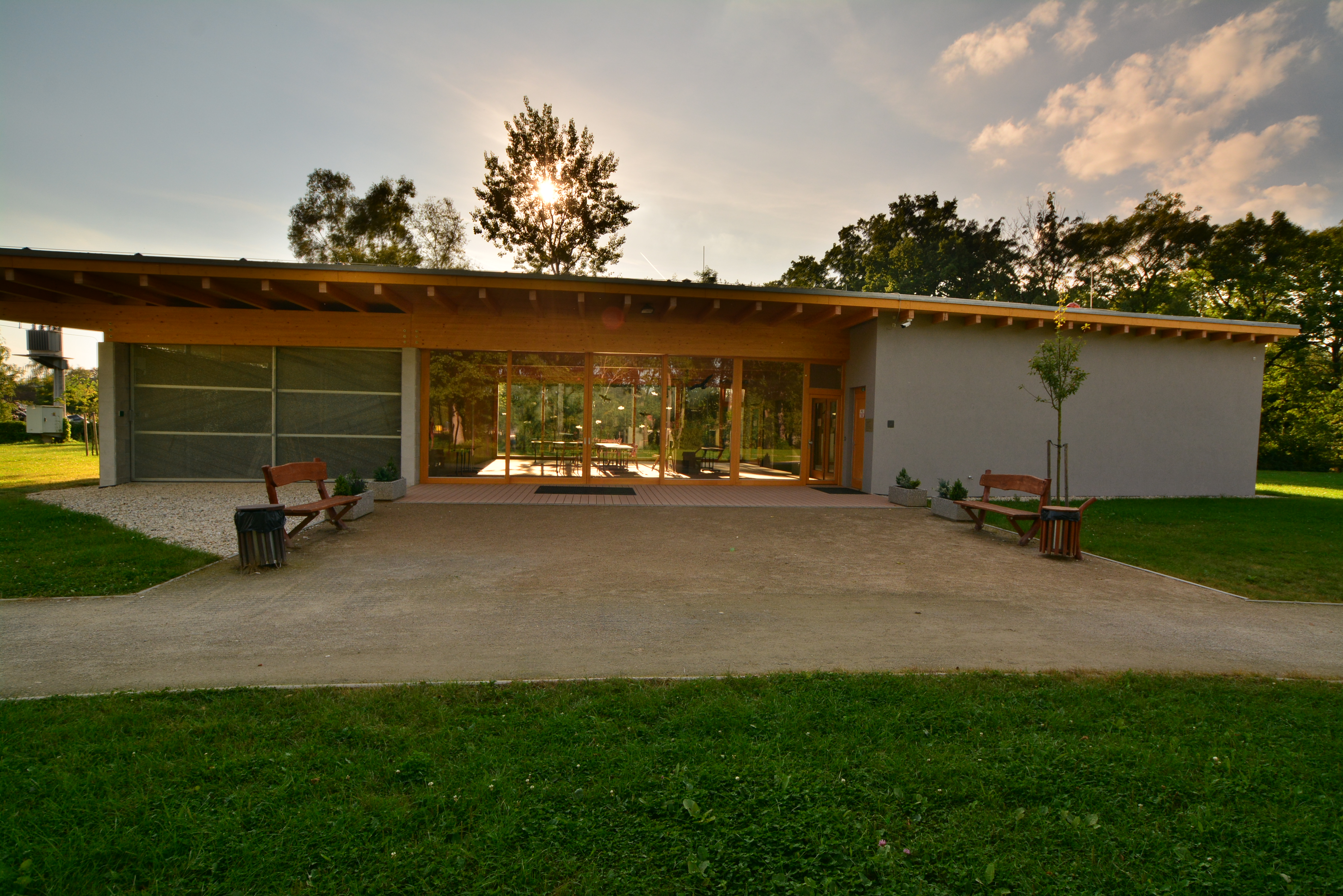 a) venkovní učebny pro cca 40 posluchačů. Tato učebna je zastřešeným, netemperovaným prostorem s centrálně umístěným krbem. Učebna bude využita zejména při pořádání větších akcí, konferencí, kdy je vhodné zajistit prostory pro více samostatně jednajících pracovních skupin, a to po delší časové úseky. Toto je typické zejména pro zajištění vědeckých konferencí s množstvím jednotlivých pracovních skupin. Učebna je prosklena a je situována tak, aby výuka byla fyzicky zasazena do inspirativního environmentálně hodnotného prostředí. Zároveň a hlavně bude využita při vzdělávacích akcích pro děti a studenty, které v letních měsících budou využívat edukativního prostředí střediska MEVPIS a tím bude umožněna ?venkovní? výuka. V případě příznivých klimatických podmínek bude učebna otevřena a volně přístupná, de facto bude plnitfunkci zastřešeného, vzdušného vzdělávacího prostoru. Za méně příznivých podmínek lze využít možnosti vlastního uzavření skrze prosklené bočnice. Jedná se tedy o vysoce atraktivní prostor sloužící zejména k výuce ve vlastní ?přírodě?. Toto bude využíváno i při EVVO osvětě, vzdělávání u ozdravných pobytů pro děti, žáky, pedagogy z regionů se zhoršeným životním prostředím.