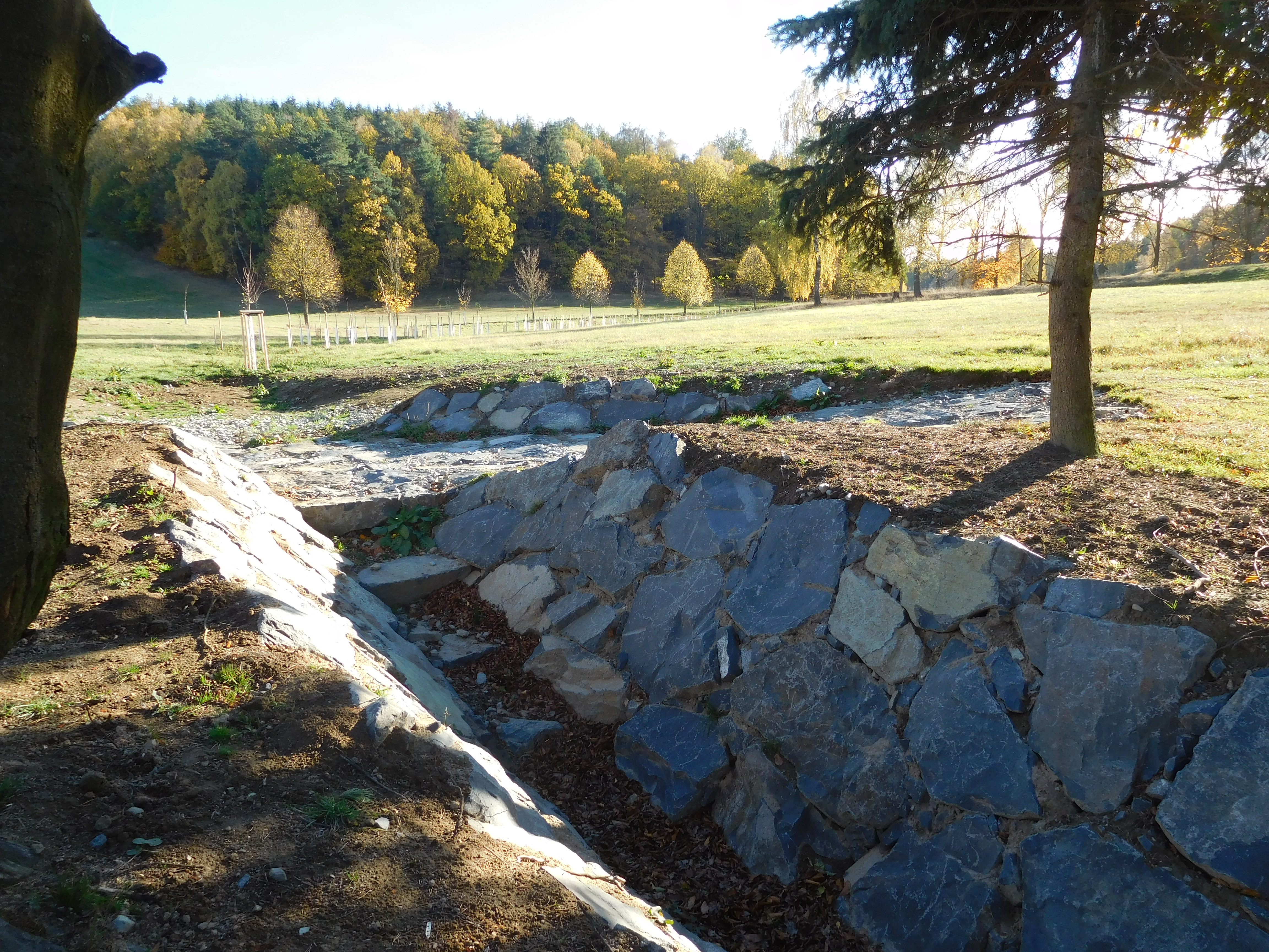 Jedná se o novostavbu suché retenční nádrže, jejíž výstavbou došlo ke zvýšení stupně ochrany obce před povodňovými situacemi, které se zde vyskytují po přívalových i dlouhotrvajících deštích. Dvacetiletý průtok v profilu hráze se transformuje na odtoku na dvouletý povodňový průtok. Z hlediska povodní je suchá retenční nádrž navržena na bezpečný provoz i při stoletém povodňovém průtoku. Projekt navrátil do krajiny přirozené vodní plochy a zvýšil biodiverzitu, zlepšil vodohospodářské poměry a brání ničivým protipovodňovým rozlivům. Zároveň celkově zvýšil ekologickou stabilitu v dotčené lokalitě.